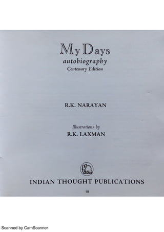 My Days Autobiography Von Narayan R K 186 Pp 1 Vols 8vo 1995 Signed By Author S James Cummins Bookseller Abaa